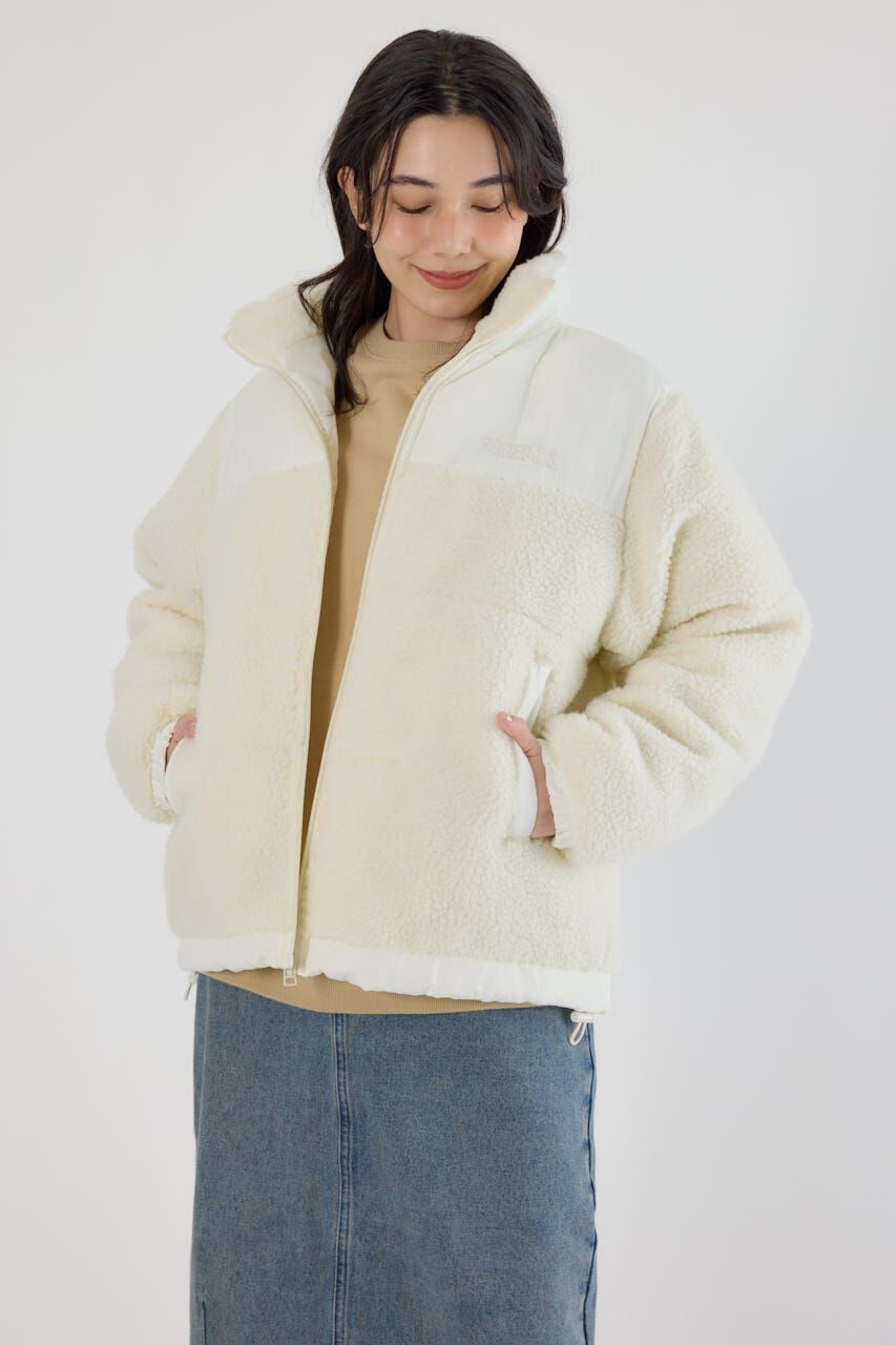 ■ポイントボアとナイロンの異素材ミックスデザインがキャッチーなジャケット。ボリュームのあるシルエットが存在感を放つアイテムです。ユニセックスでの着用.. |