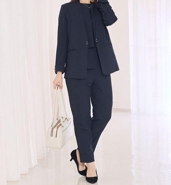 【アバハウス マヴィ/abahouse mavie】 【エニデイカセット】ノーカラージャケット&フレンチスリーブ・パンツセットアップ