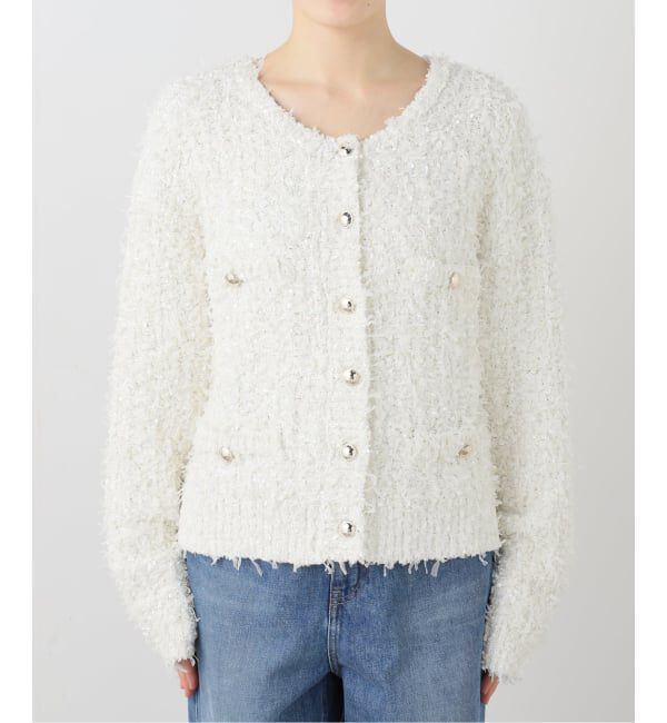 手洗い可能【2026SS】SLOBE IENAPOINT・軽さのあるニット素材のツィードジャケット。【素材の特徴】表面感のあるニットツィード素材。ラメ入りの生地で華やか.. |