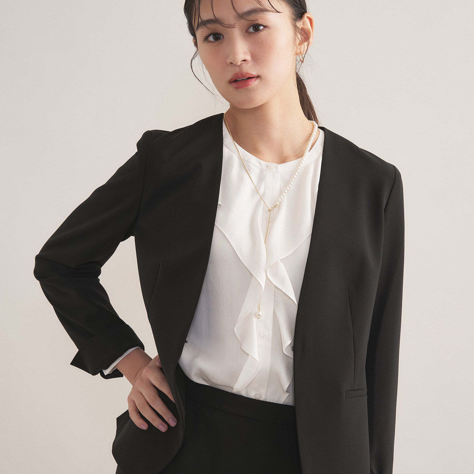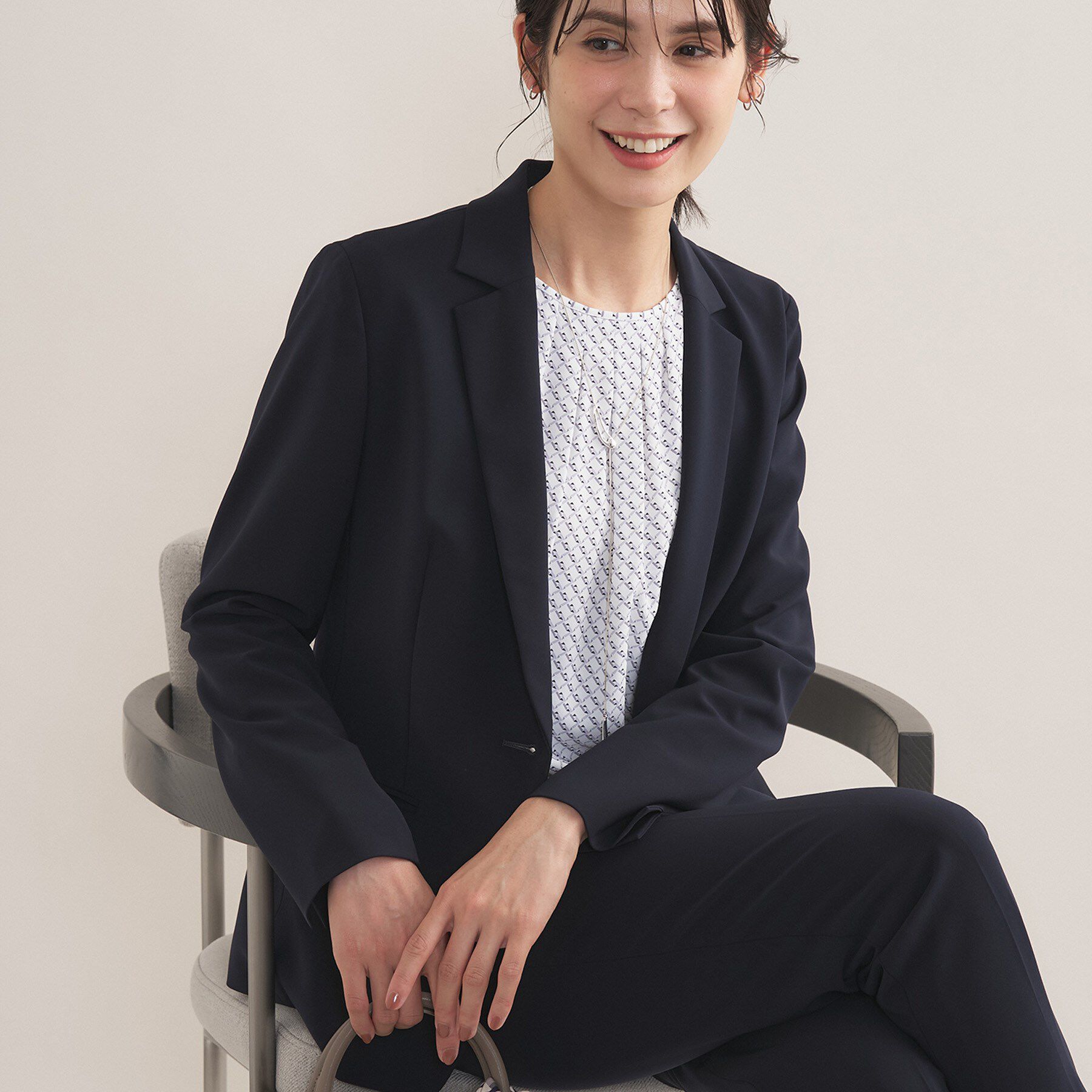 『こなれ SETUP ― セットアップの新常識は、ゆる感が今っぽい ―』Beauty project for SETUP【デザインポイント】程よい落ち感のある素材を使用したノーカラー.. |