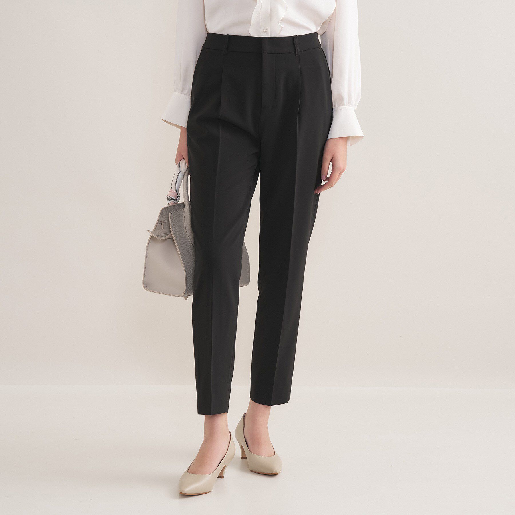 【デザインポイント】素材をアップデートし新しくなったINDIVI定番のタックテーパードパンツです。クリーンでスタイリッシュな細身のラインで身体にフィットし.. |
