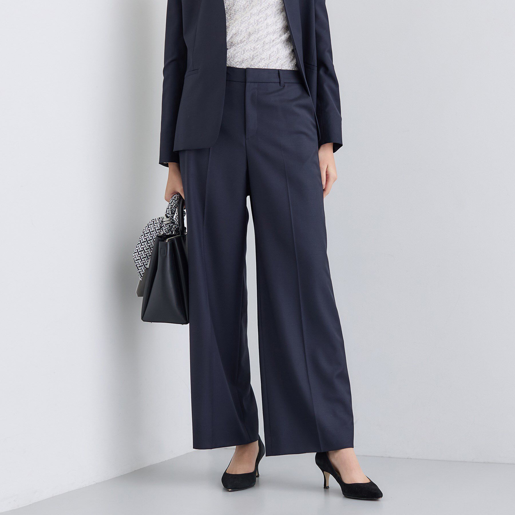【デザインポイント】シルクの上品な光沢感、良質感が特徴のスーツパンツです。INDIVI らしいシャープなラインとしなやかな素材感が凛とした佇まいを演出しま.. |