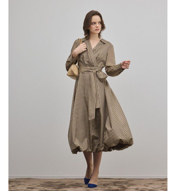 【JapanFabric】 繊細な糸で織り上げたギンガムチェックのタフタ素材。 女性らしいカシュクールディティール&バルーンシルエットのワンピース。 ※こちらのモ.. |