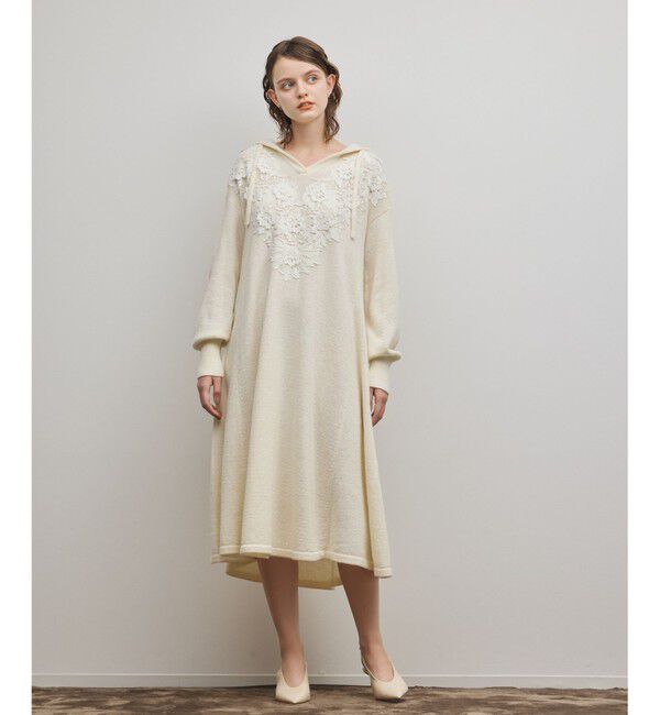 春の穏やかな季節に似合う、上品なケミカルレースがポイントのニットワンピース。 ループ状のブークレ糸を使用した表情のある編地に、オリジナル.. |