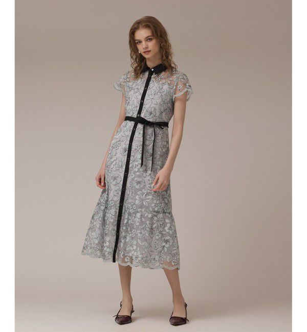 印象的な素材が一際目を惹く華やかなシャツワンピース。透け感のあるチュールをテープ状にし、ドットチュールの上に刺繍を施したラグジュアリーなレース地を使.. |