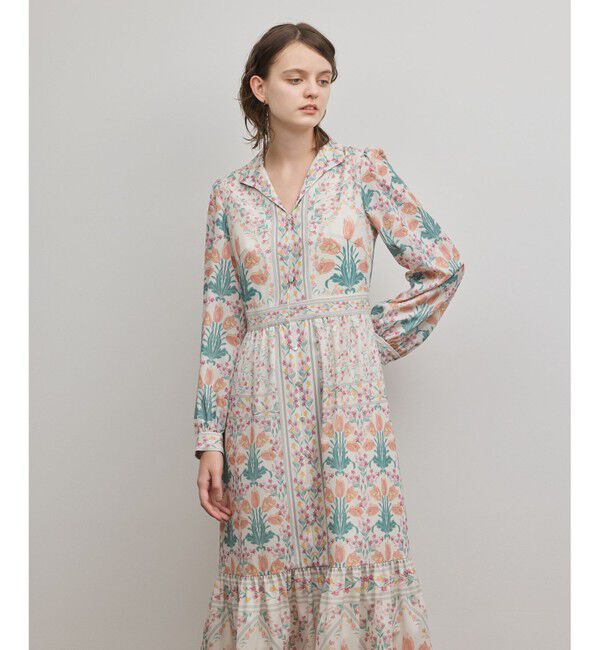 薄手のさらっとしたしなやかなデシン素材に、ブーケフラワーモチーフのプリントをのせたシャツドレス。 クラシックな柄と独特のカラーが美しく調.. |