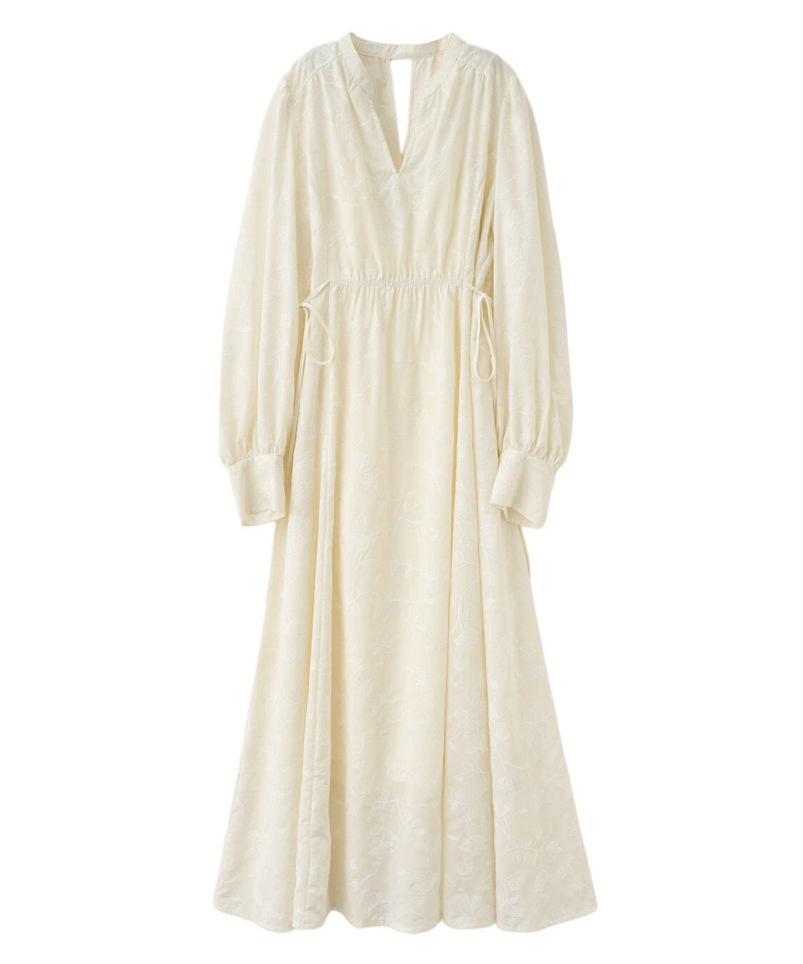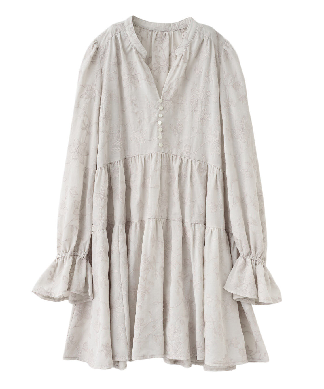 程よい透け感の生地にオリジナルのフラワー刺繍を施したロングワンピース。衿元は抜け感が出るようスキッパー衿に。着脱が楽なゴム仕様に仕上げました。袖をま.. |