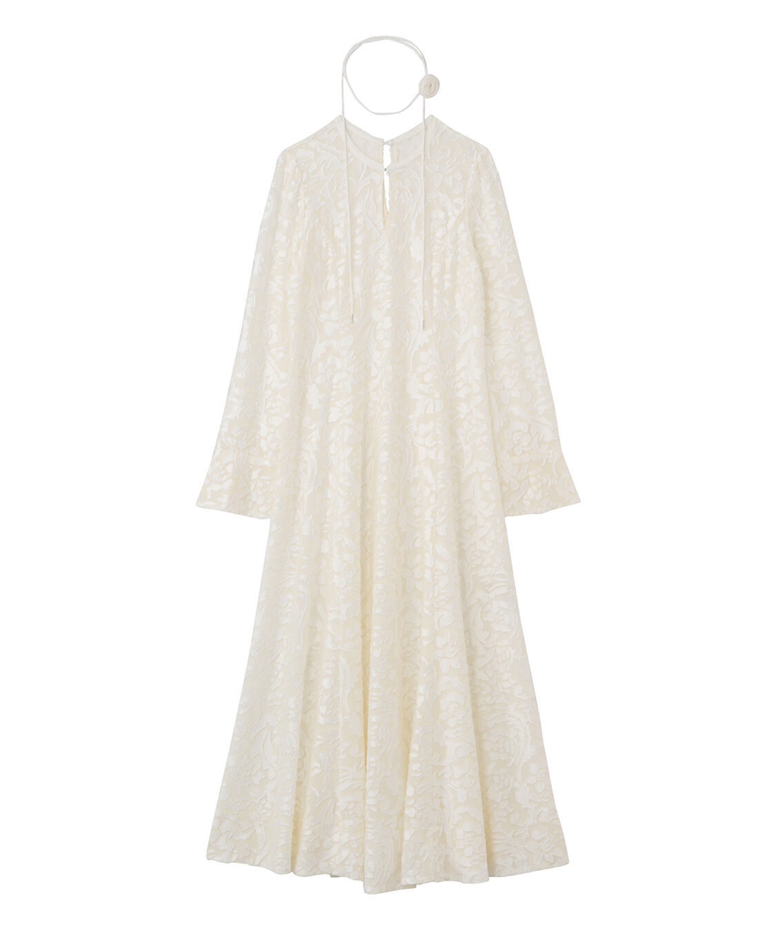 少しかすれたジャカード織のようなフラワープリントを施したワンピース。寒い時期にも着られるように透け感が程よいジョーゼット素材を使用しています。プリー.. |