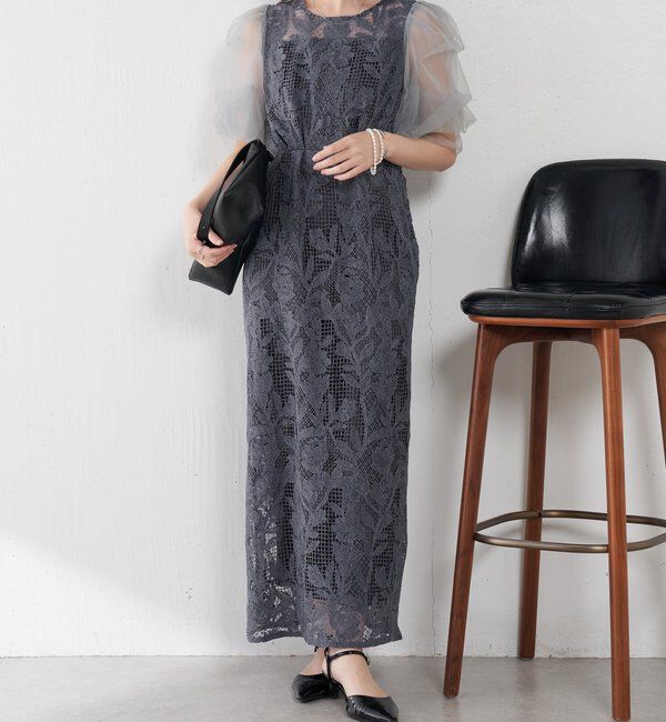 清楚なブルーが際立つチュール×レースワンピース 【POINT】 ・甘すぎない大柄なフラワー×チェックのレース柄が大人っぽさを演出.. |
