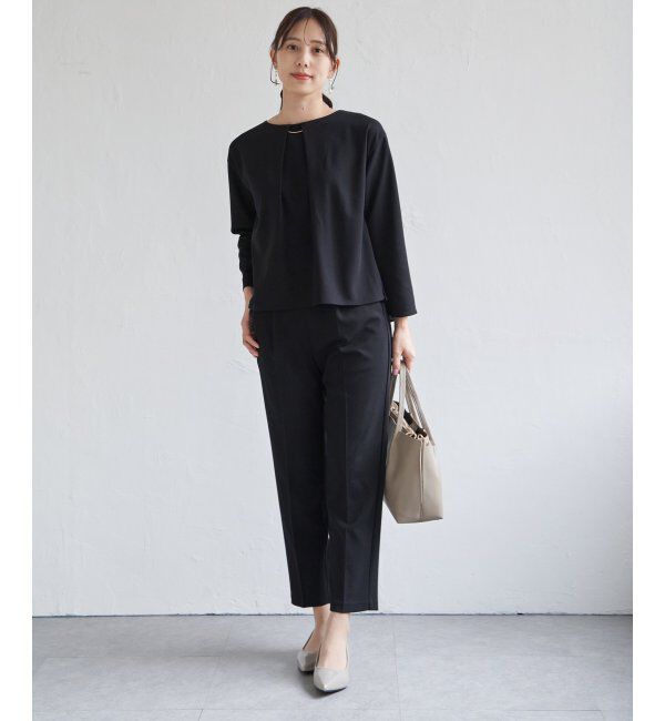 ペプラム切り替えのトップスと、シンプルでベーシックなテーパードパンツが揃ったセットアップ。上下別々でも着回しやすく、コーディネートの幅が広がります。.. |