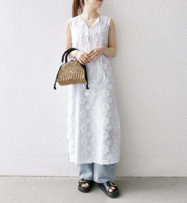 【シップス/SHIPS】 SHIPS any:〈手洗い可能〉3D フラワー エンブロイダリー ロング ワンピース