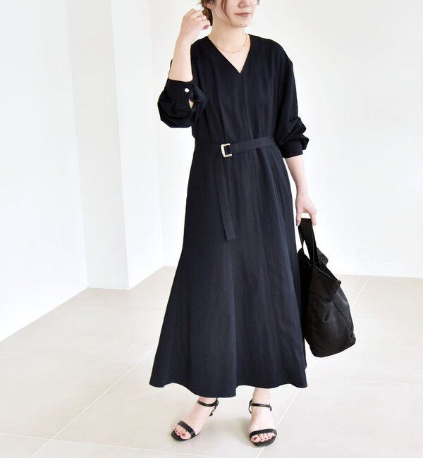 【シップス/SHIPS】 quaranciel:〈洗濯機可能〉ツイル Vネック ベルト フレア ワンピース