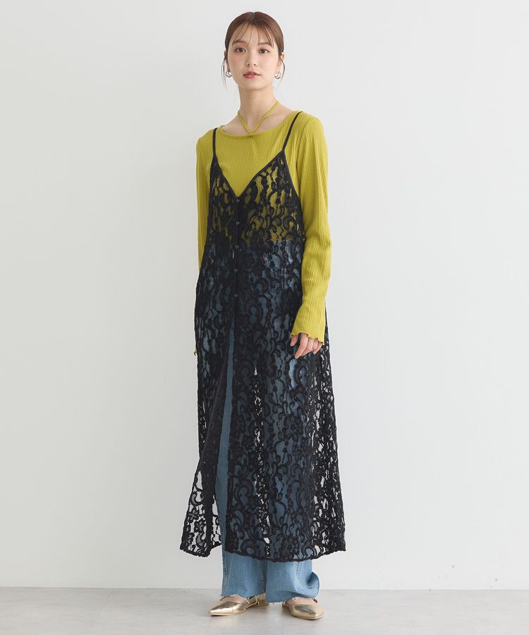 【アースミュージックアンドエコロジー/earth music&ecology】 起毛レースレイヤードキャミワンピース