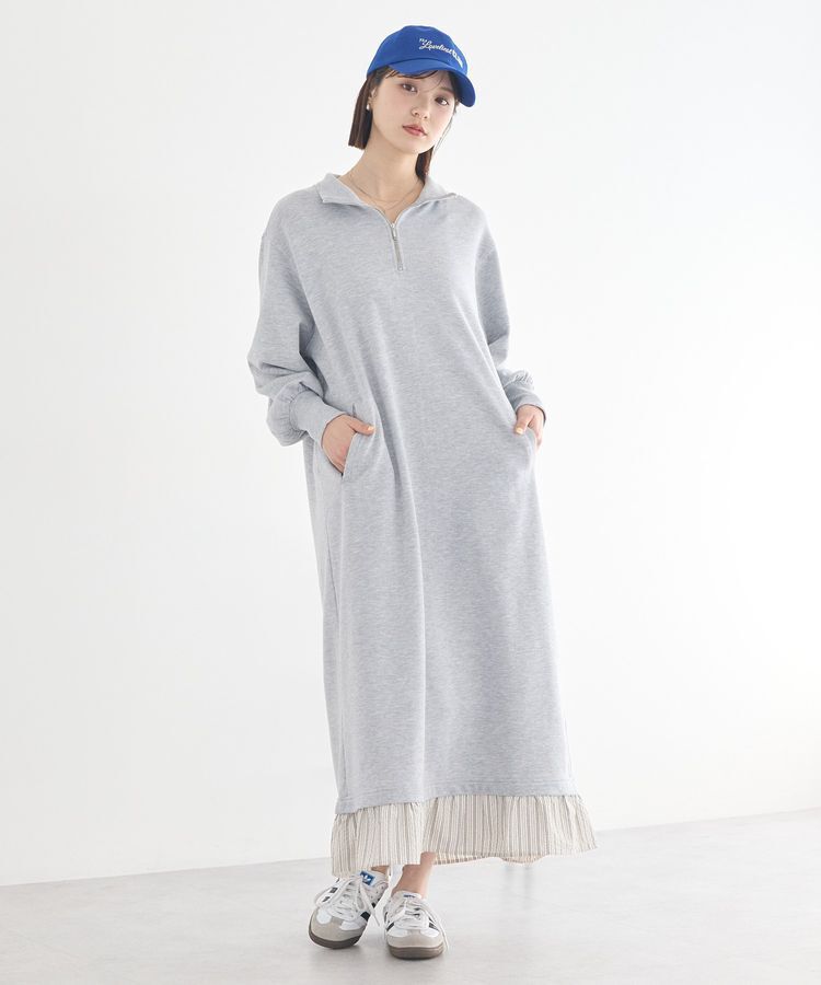 重ね着風デザインで叶える大人の抜け感一枚でコーディネートが完成する、レイヤード風デザインのワンピースです。裾からのぞく異素材ヘムがさりげないアクセン.. |