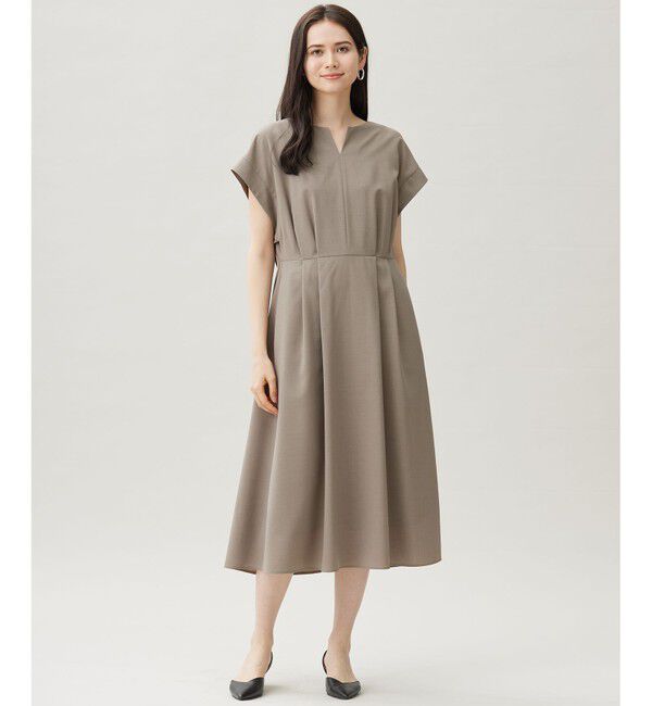 広がり過ぎない美シルエットの1枚映えワンピース■デザイン前後の身頃のタックディティールと、タックから生まれるドレープが華やかな印象のワンピースです。ウ.. |