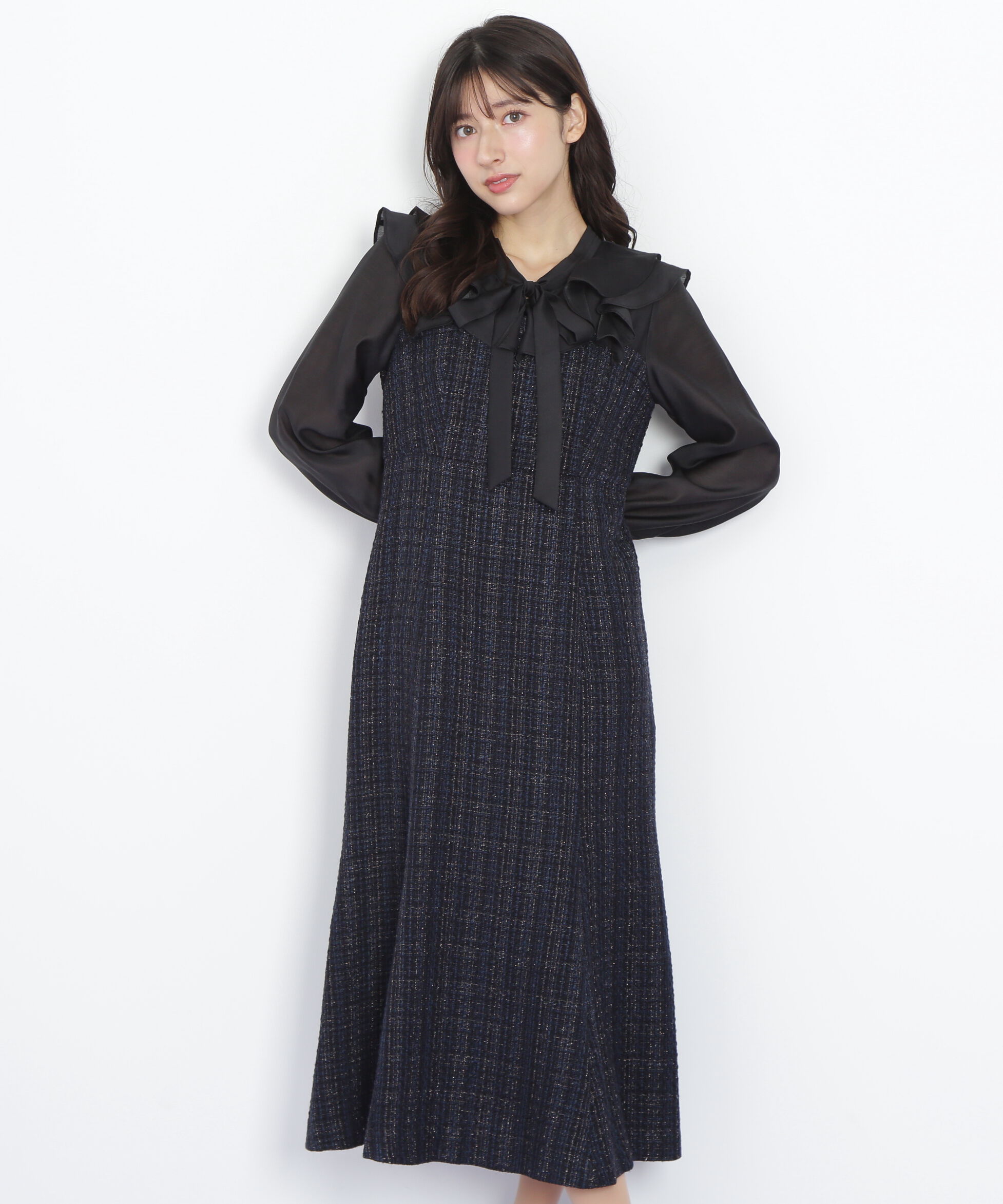 【ジル バイ ジル スチュアート/JILL by JILL STUART】 ブラウスドッキングツィードワンピース