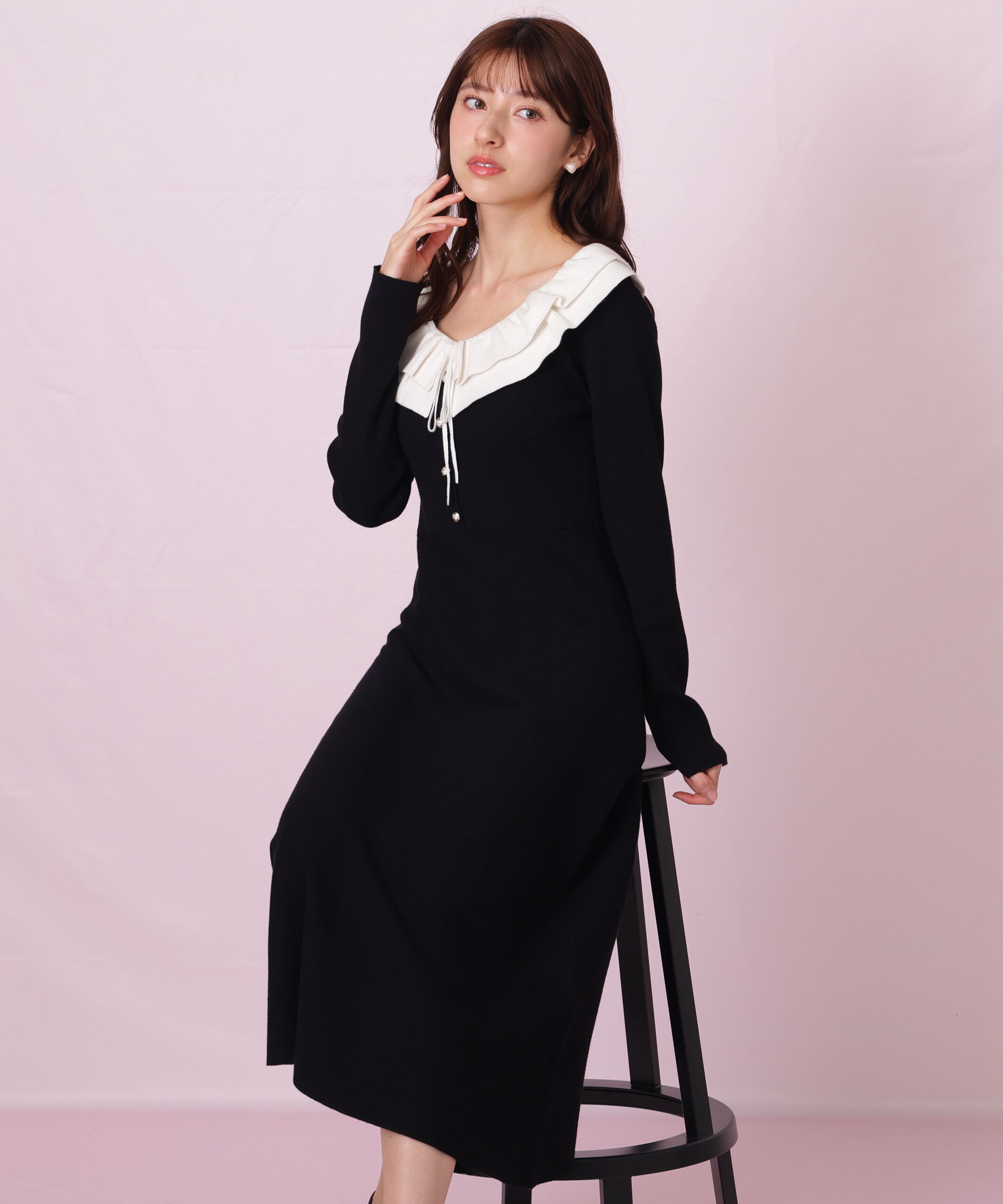 【ジル バイ ジル スチュアート/JILL by JILL STUART】 フリル襟バイカラーニットワンピース