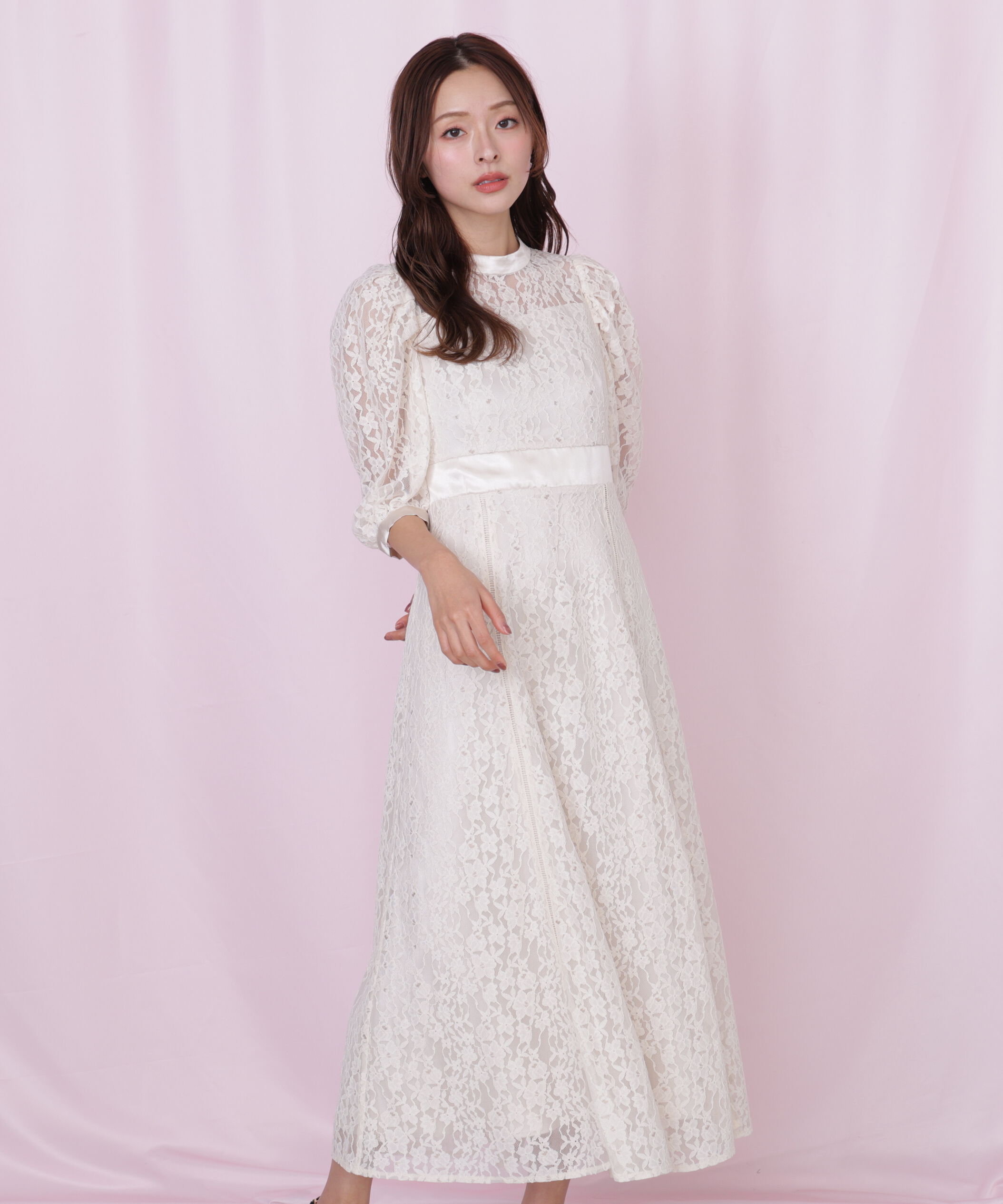 繊細なレースを贅沢に使用した上品で華やかなワンピース。フェミニンな表情を引き出しながらも、体のラインを美しく見せてくれるシルエットです。程よい透け感.. |