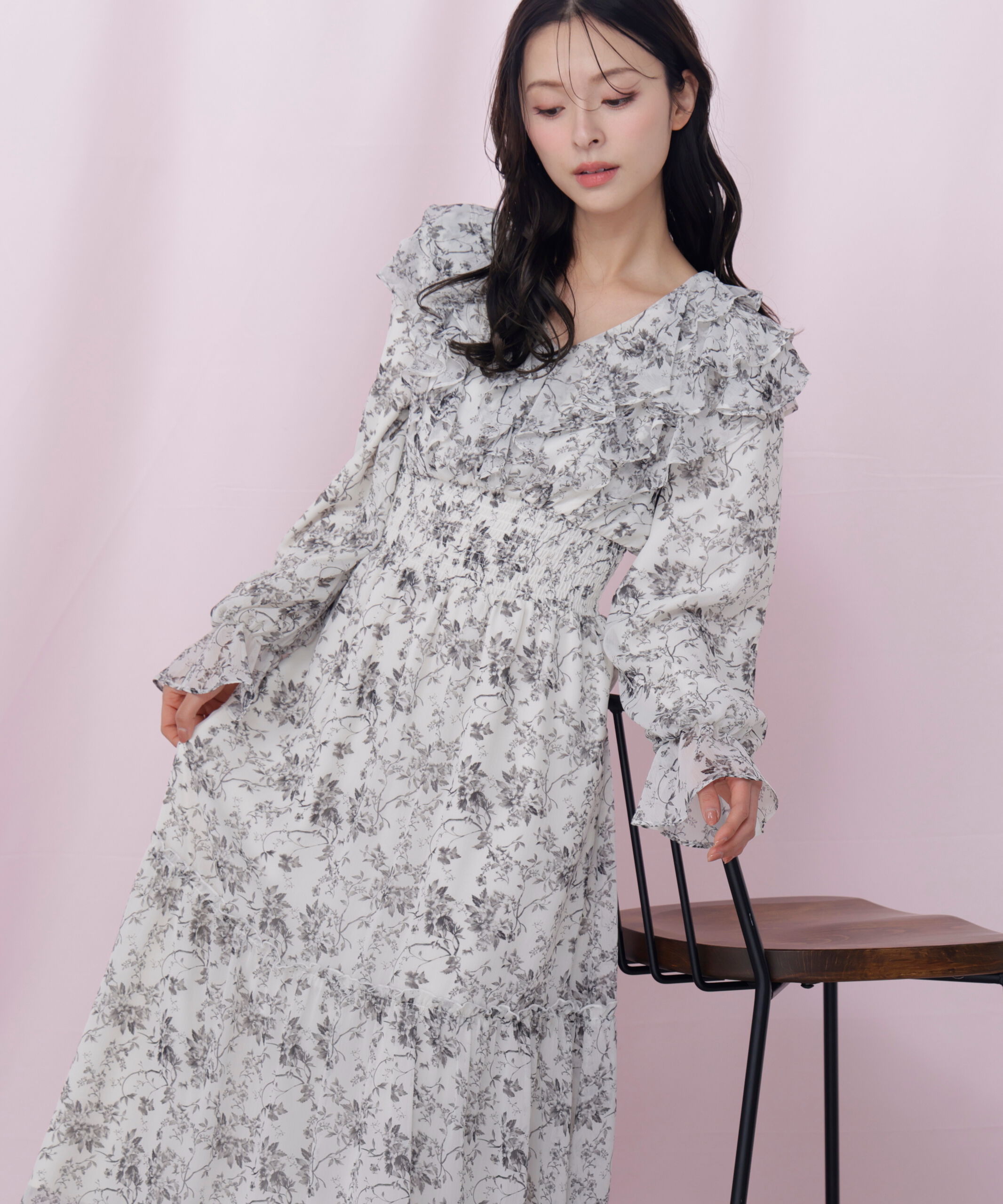 春らしい花柄が目を引くボリュームフリルワンピース。顔まわりを華やかに見せるフリルデザインが女性らしさを演出してくれます。手首をきゅっと締めるスリーブ.. |