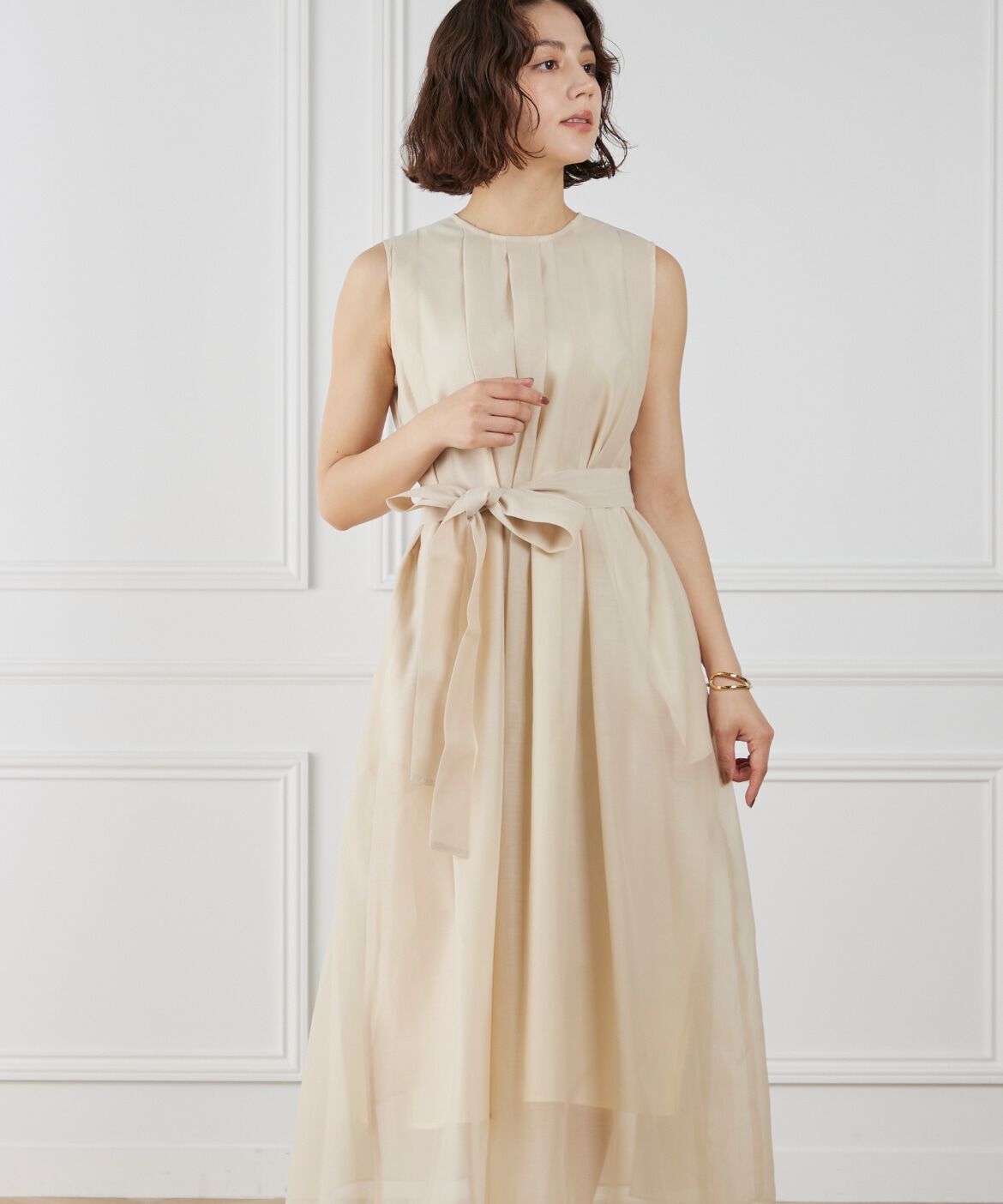 ■デザイン裾にたっぷりと入れたフレアラインが上品なノースリーブワンピース。上身頃はスッキリとしたシルエットで腰のあたりからフレアーを入れているのでヒ.. |