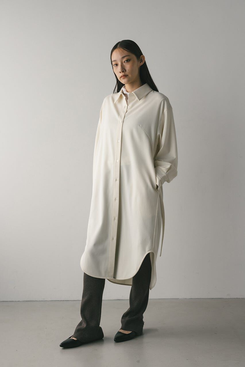 モデル身長163cm(FREEサイズ着用)肩を絶妙にドロップさせたこなれたルーズ感と裾のテールシルエットがポイントのシャツワンピース。アイボリーの無地とクレ.. |