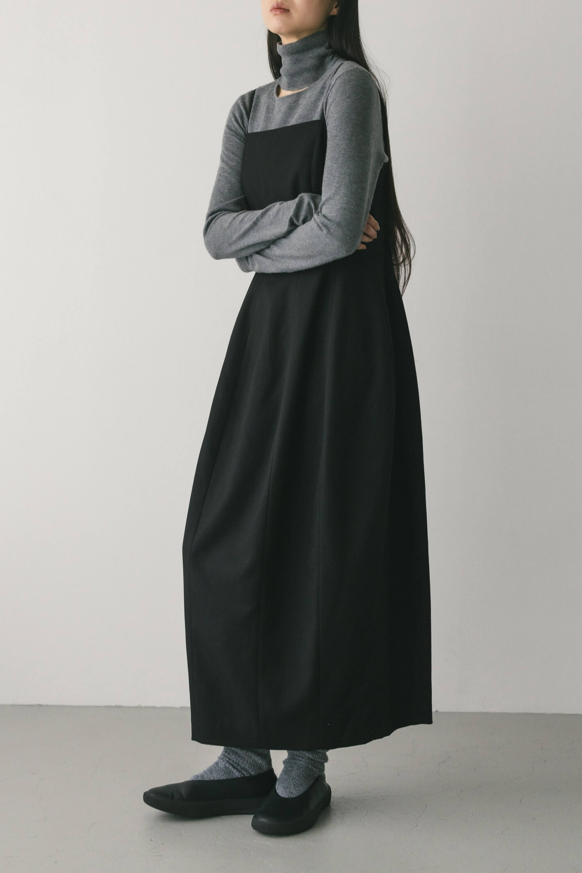 BEG:モデル身長167cm(Mサイズ着用)BLK,LYEL:モデル身長166cm(Mサイズ着用)すとんとしたミニマムストラップワンピースにホルタートップがセットになったア.. |