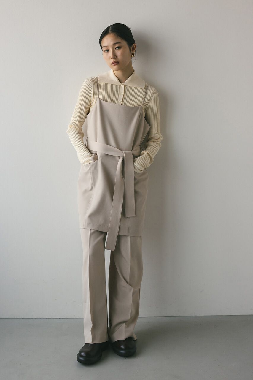 モデル身長165cm(Mサイズ着用)スーツ仕立てでレイヤードしているようなオールインワン。マニッシュかつ女性らしい雰囲気で、幅広いシーンで着用いただけます.. |