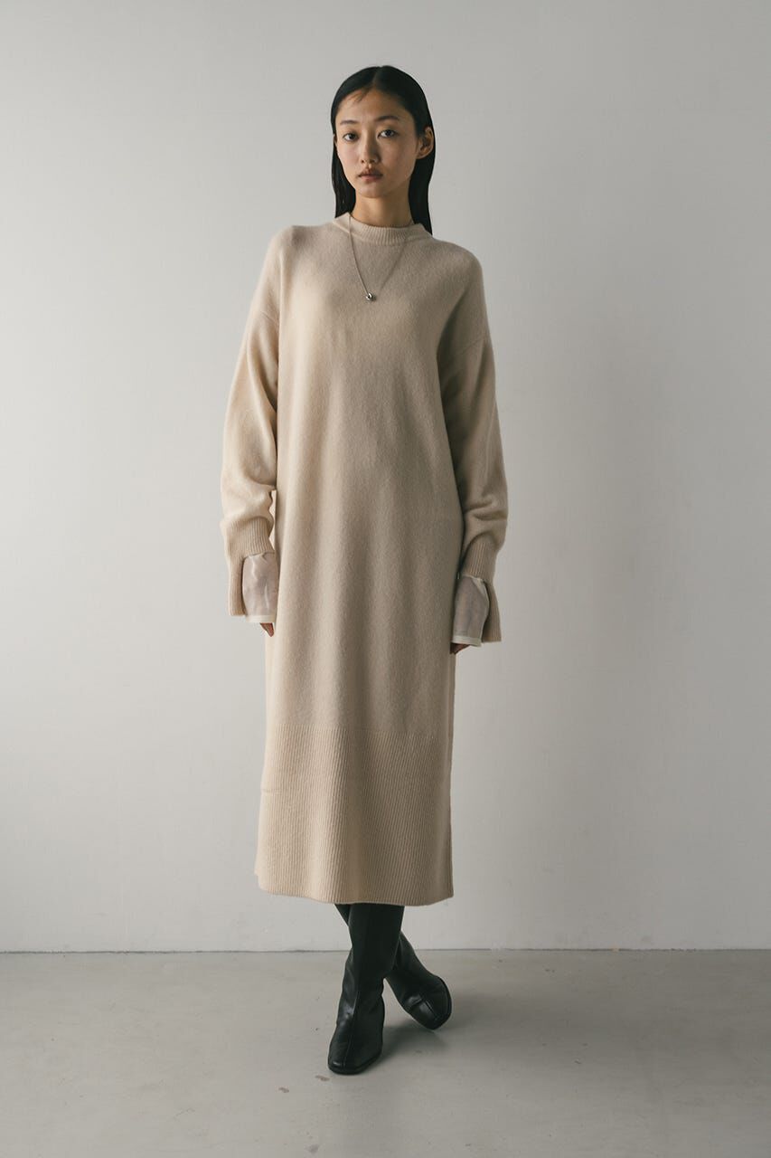 モデル身長178cm(Mサイズ着用)暖かさと着心地の良さをかなえたウールニットワンピース。スタミキらしいスリットスリーブがデザインポイント。抜け感のあるル.. |