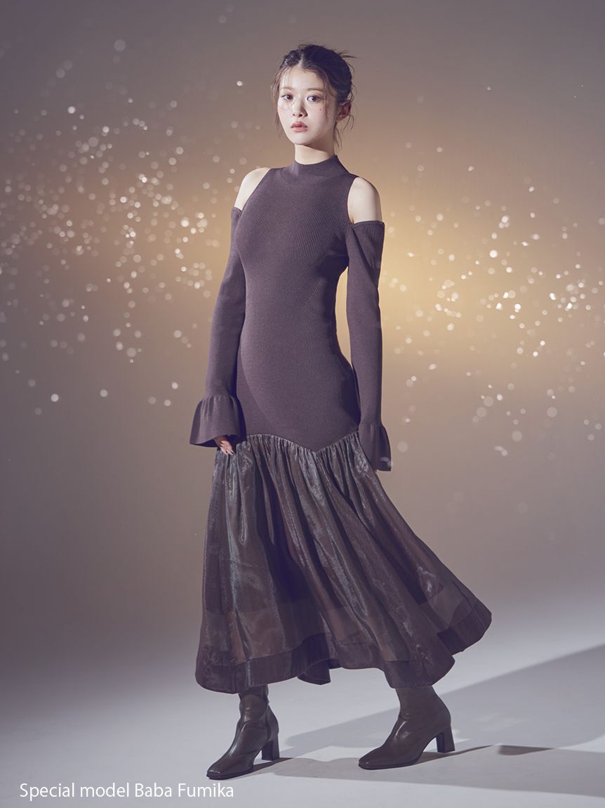 【シンプルながらも1枚でドレッシーなコールドショルダーニットワンピース】【Design/Styling】大人の肌見せを叶えるエレガントなコールドショルダーニットワ.. |