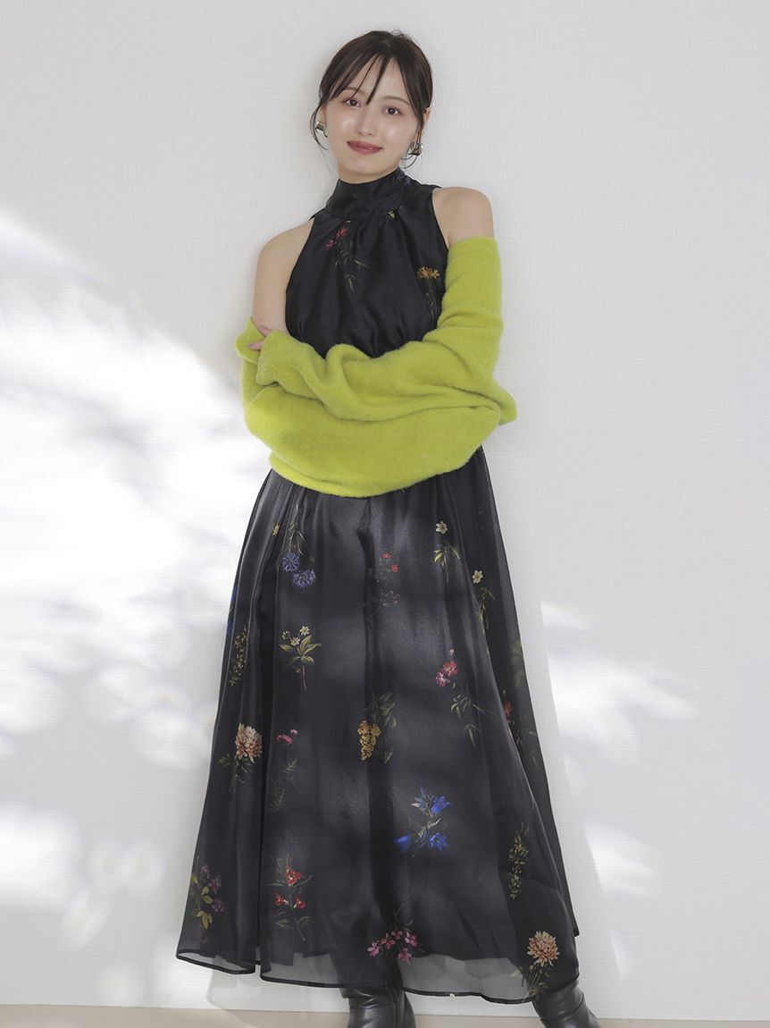 【SNIDELオリジナル柄アメスリデザインワンピースとゆるっと着られるニットボレロの大人なセットアイテム】【Design/Styling】10種類以上の色とりどりのフラワ.. |