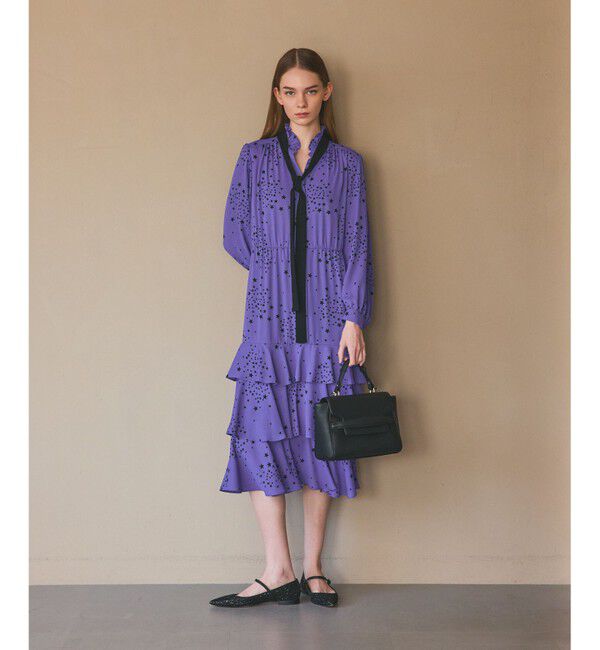【Japan Fabric】 表情感のある梨地ジョーゼットにオリジナルのヴィンテージ図案からおこしたランダムエトワール柄をプリントした分量感のあるティアードシャ.. |