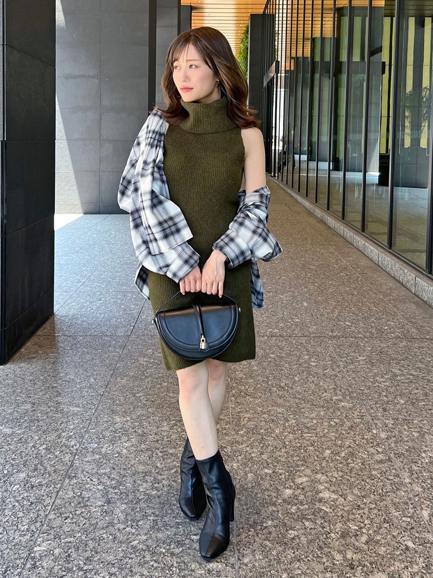 【顔まわり華やかなタートルネックのノースリーブニットワンピース】【Design/Styling】たっぷりとボリュームのあるタートルで、顔まわりを華やかに演出するタ.. |