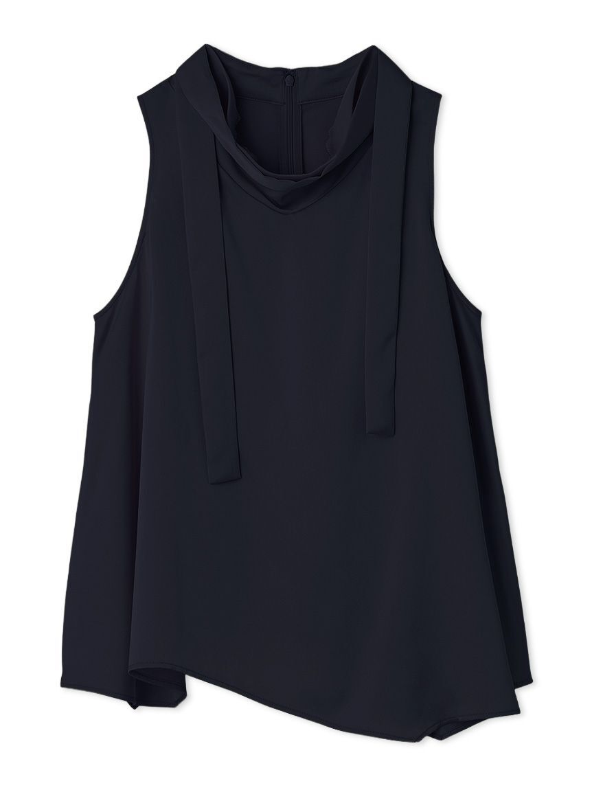 【2WAYアレンジができる、ボウタイ付きの艶めきドレープサテンチュニック】【Design/Styling】程よくツヤっとしたサテン生地がレディな印象のノースリサテン.. |