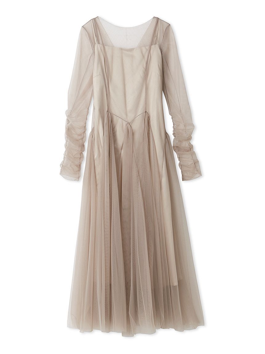 【ふんわりチュールワンピースとサテンキャミワンピースの儚げなドレスセット】【Design/Styling】繊細でエアリーなシアーチュールを全体にたっぷりと使用し、.. |