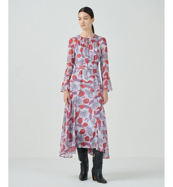 美しいフラワープリントをのせた、上品に着映えるフレアワンピース。 晩夏から初秋にも着て頂けるよう、肉感のあるジョーゼット素材を選んでいま.. |