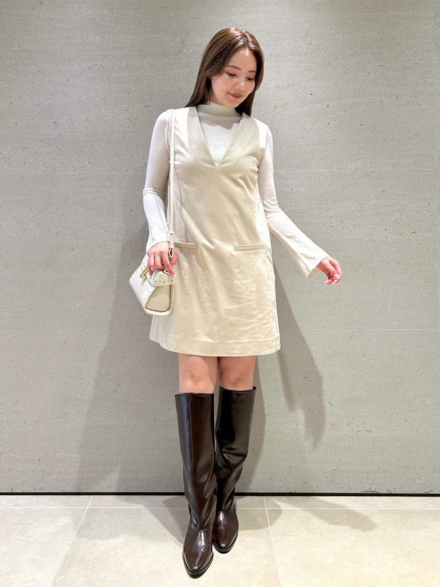 首元のVネックラインがすっきりと大人上品に仕上がるジャンパーミニスカート。程よくゆとりのあるサイズ感で、体のラインを拾いにくいIラインシルエットでお作.. |