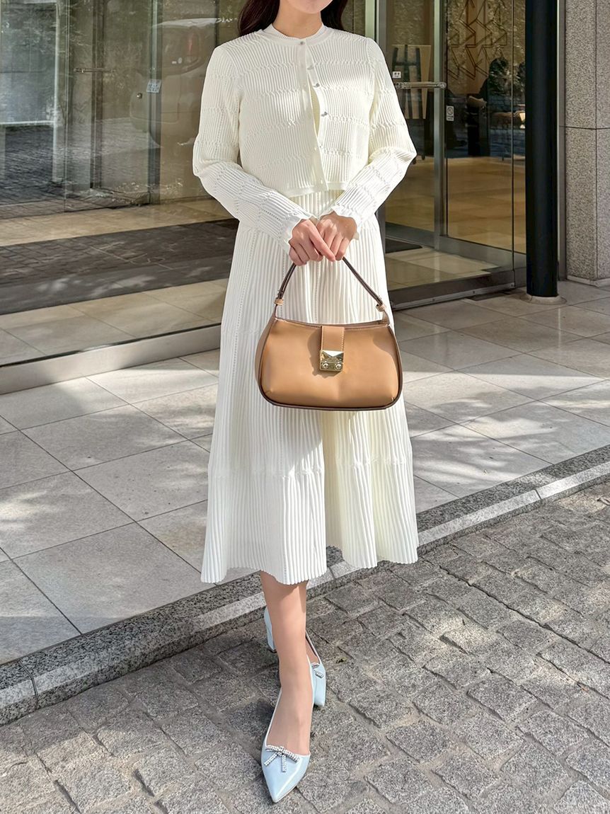 【TUCK SLEEVE FLARE KNIT 2P】■POINT肩の立体的なタックが美しいシルエットを生み出す、大人可愛いニット2点セット。こだわり抜いたタック位置によって、上半.. |