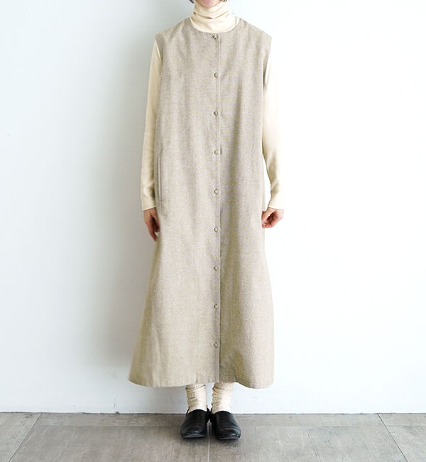 たなびく千鳥柄が特徴のロングワンピース。 少し起毛したあたたかみのある生地は、綿リネンの生地を使用。 肌に馴染む、やさしい風合いに仕上がりました。 袖.. |