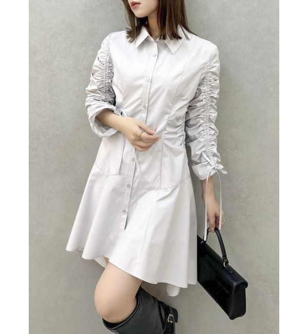 【ダズリン/dazzlin】 ギャザースリーブイレヘムシャツワンピース