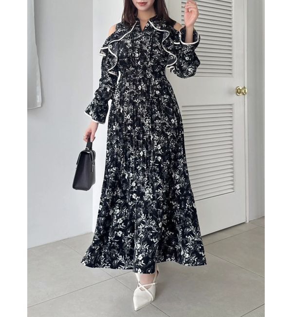 【アイテム】dazzlin(ダズリン)王道の花柄ワンピースが登場。程よい肩のカットアウトで清楚さと抜け感を両立。【スタイリング】足元はショートブーツやパンプ.. |