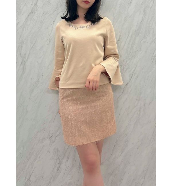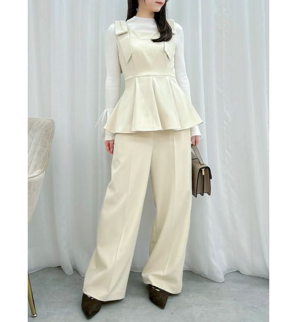 【商品】リボンは取り外し可能で、シーンに合わせて着こなしを変えられる2WAY仕様。こだわりの構築的なペプラムシルエットがスタイルアップを叶え、自然な足長.. |