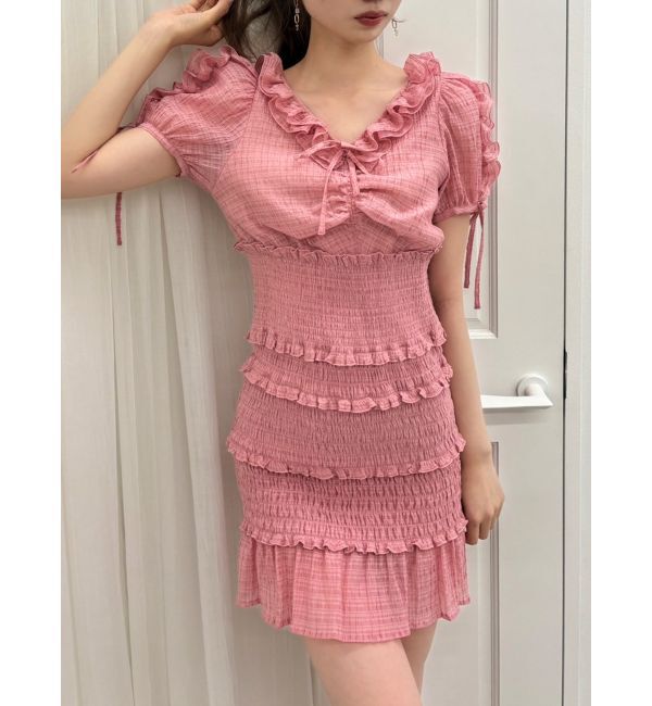 \大人気のワンピースがミニ丈になりました!/>>ロング丈はこちらから<<【アイテム】 ロマンティックなラッフルティアードデザインを取り入れつつ、軽や.. |
