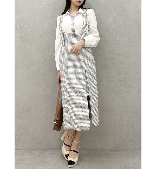 【商品】ブラウスをドッキングした1枚で手軽にレイヤードスタイルにトライできるワンピースデザイン。縦にすっきりとしたルエットが楽しめます。シャツの前立.. |
