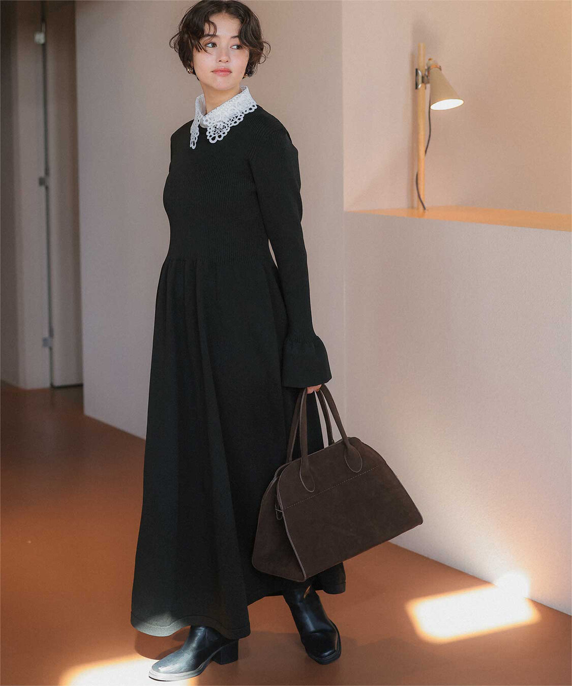 【ティティベイト/titivate】 ボートネックロングニットワンピース