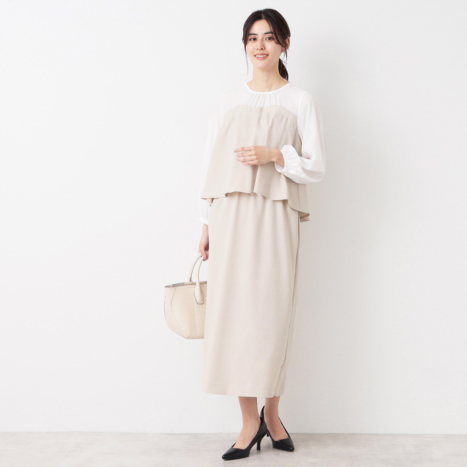 【デザインポイント】全体的にすっきりとしたIラインシルエットに、ペプラムデザインが女性らしいワンピースです。気になるウエスト周りをカバーするデザイン.. |