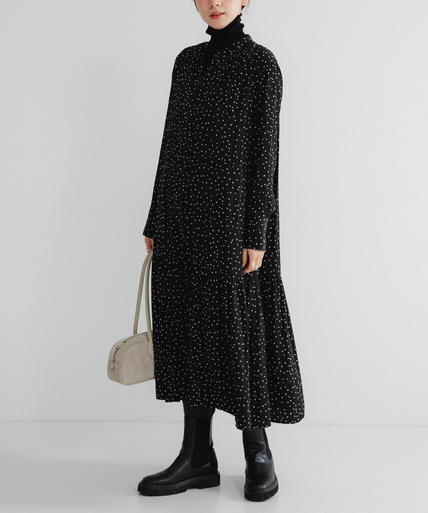 品のある微光沢が魅力の、ギャザーティアードワンピース。軽やかな素材と甘すぎないティアードデザインが、大人の女性にぴったりな一枚です。フロントは比翼仕.. |