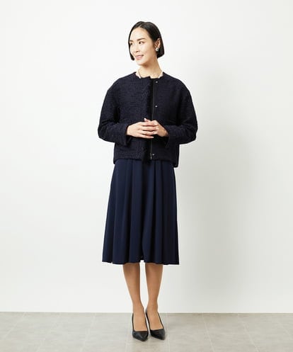 MICHEL KLEIN(ミッシェルクラン) [セットアップ対応/洗える]ノースリーブツイードワンピース ネイビー/紺 38