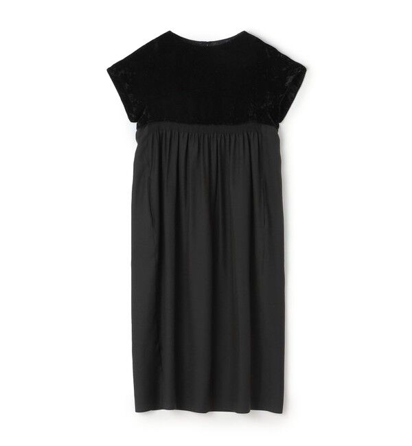 極薄で透け感のあるベルベット素材と滑らかなタッチのポリエステルアセテートの布帛素材をコンビ使いしたワンピース。肌離れの良いデザインで晩夏から秋まで長.. |
