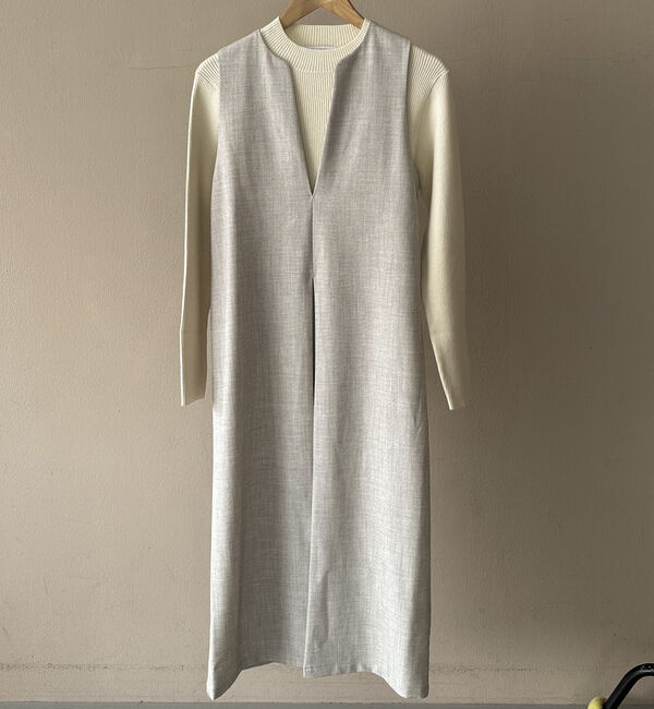 レイヤードが楽しめるリラクシーなジレワンピース【point】・ジレとしてシンプルなスタイリングにさらっとプラス・バックデザインにリボンを持ってきてノース.. |