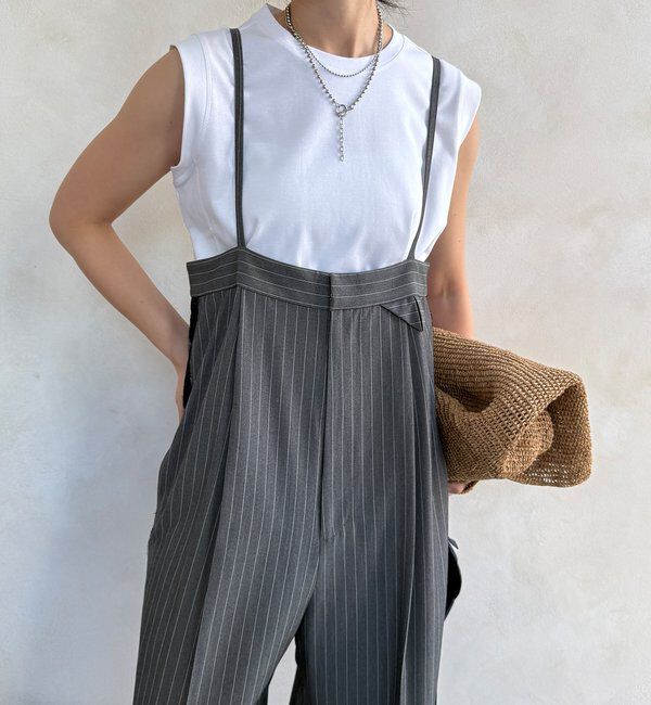 ■2026 SPRING & SUMMER ITEM■ WEB限定! 旬のシルエット。ツータックストライプサロペット 落ち着いたストライプ柄と、ゆったりとしたシルエットが魅力のツ.. |